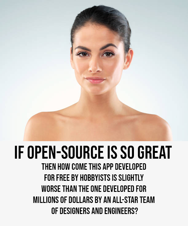 When you compare free open-source apps to million-dollar industry projects with a straight face