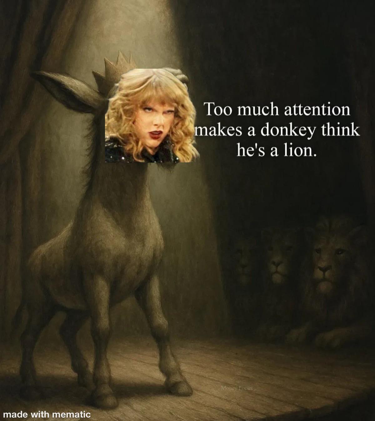 Too much attention meme goes viral as a donkey with a celebrity face thinks he is a lion. Relatable attention-seeking memes for epic social media laughs.