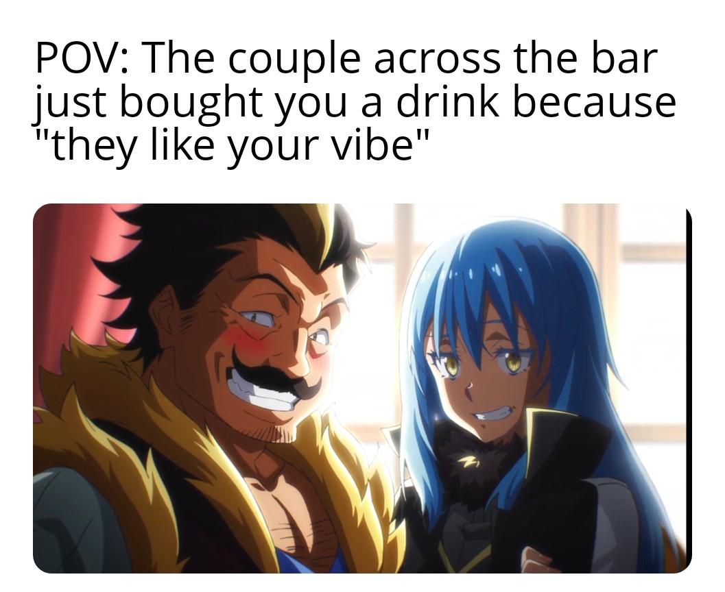 #relatable #anime #funny #POV #bar humor #reaction #social awkwardness #That Time I Got Reincarnated as a Slime #slimes #drinking #flirting #meme