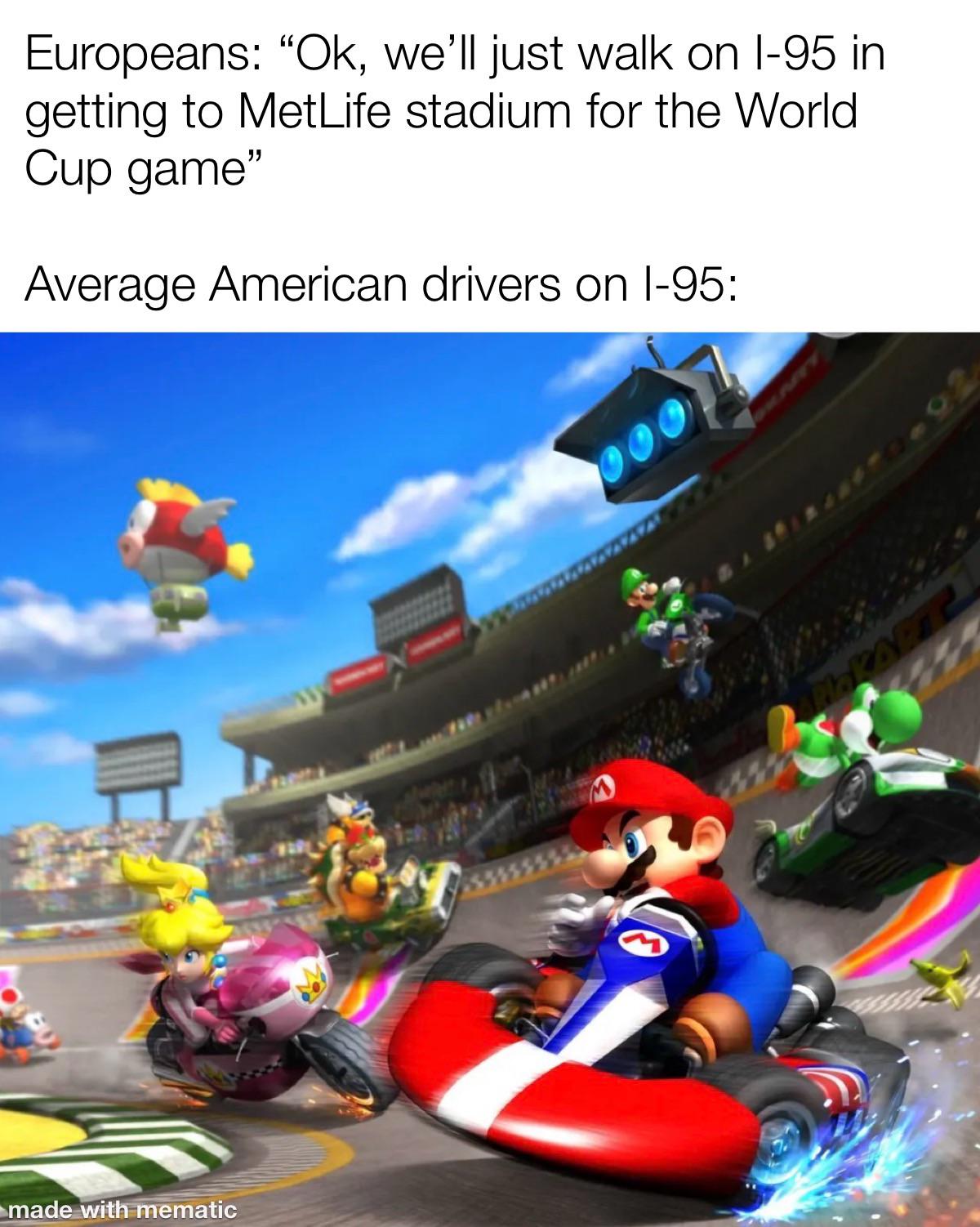 #funny #relatable #Mario Kart #I-95 #American traffic #World Cup #Europeans vs Americans #gaming meme #highway humor #reaction image #culture clash #video game