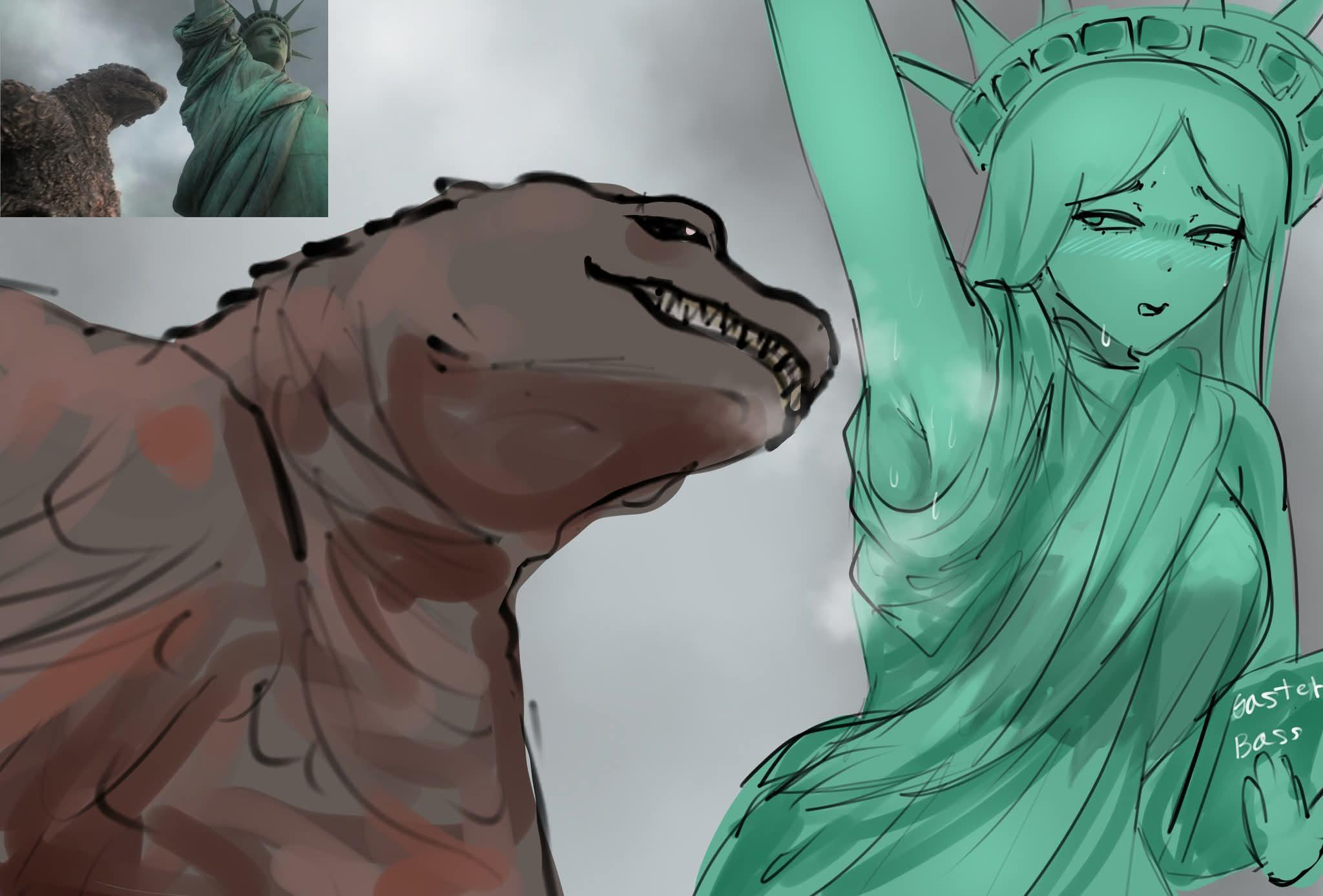#funny #anime #godzilla #statue of liberty #fanart #crossover #humor #digital art #meme #parody #monsters #internet culture