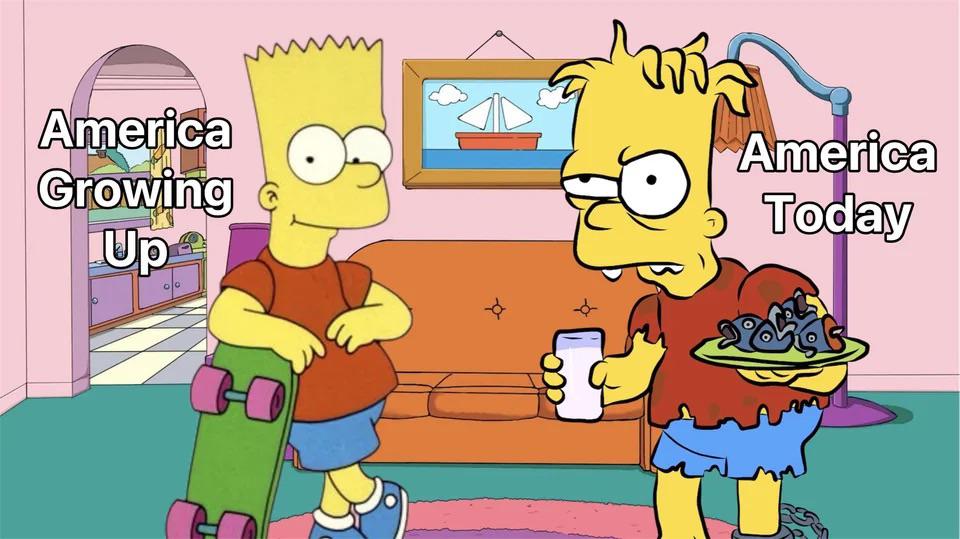#funny #political commentary #relatable #cartoon #The Simpsons #Bart Simpson #America #social satire #nostalgia #growing up #image macro #internet culture