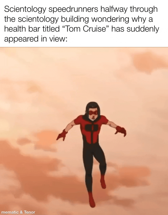 #funny #gaming #speedrun #invincible #tom cruise #scientology #boss fight #absurdist #relatable #meme #animation #pop culture