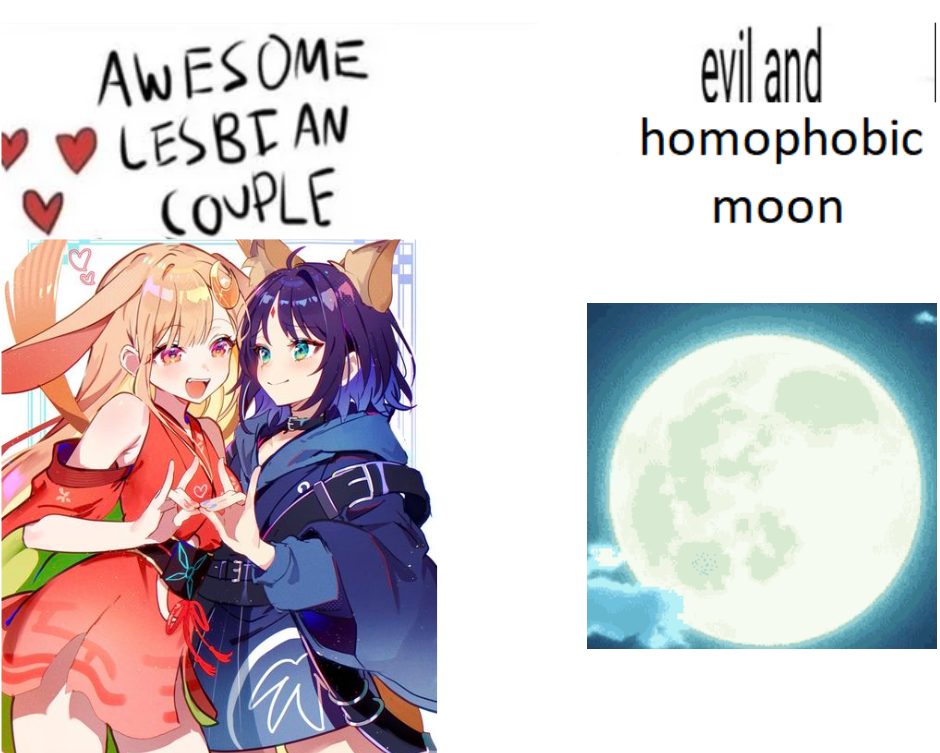 #funny #anime #lesbian #absurdist #moon #meme #relationship #couple #shitposting #comparison #lgbtq #random