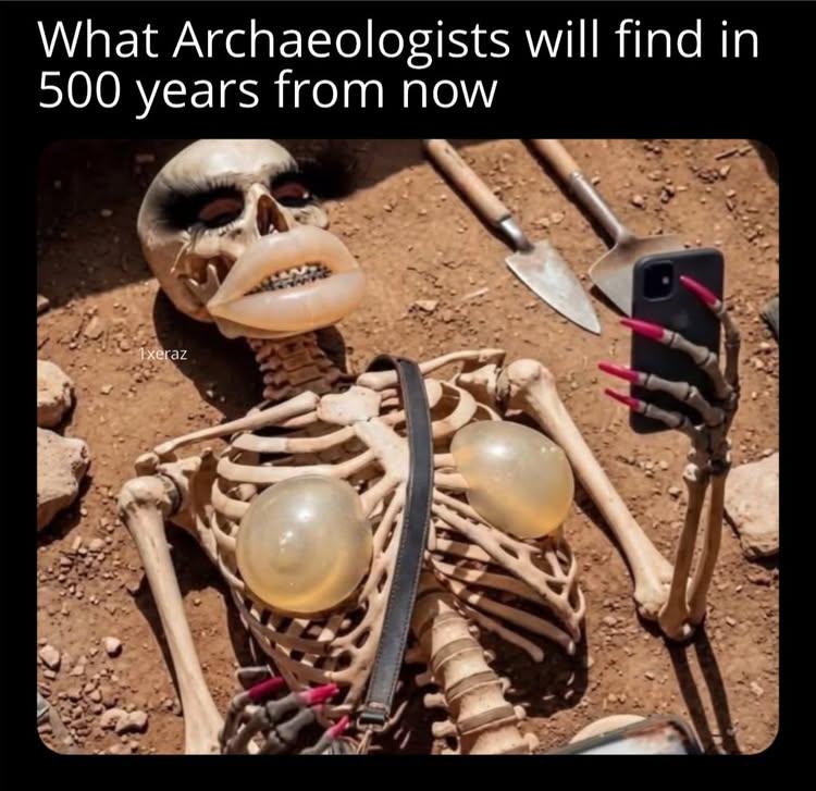 #funny #satire #skeleton #archaeology #beauty standards #social media #plastic surgery #dark humor #modern life #relatable #image macro #viral meme