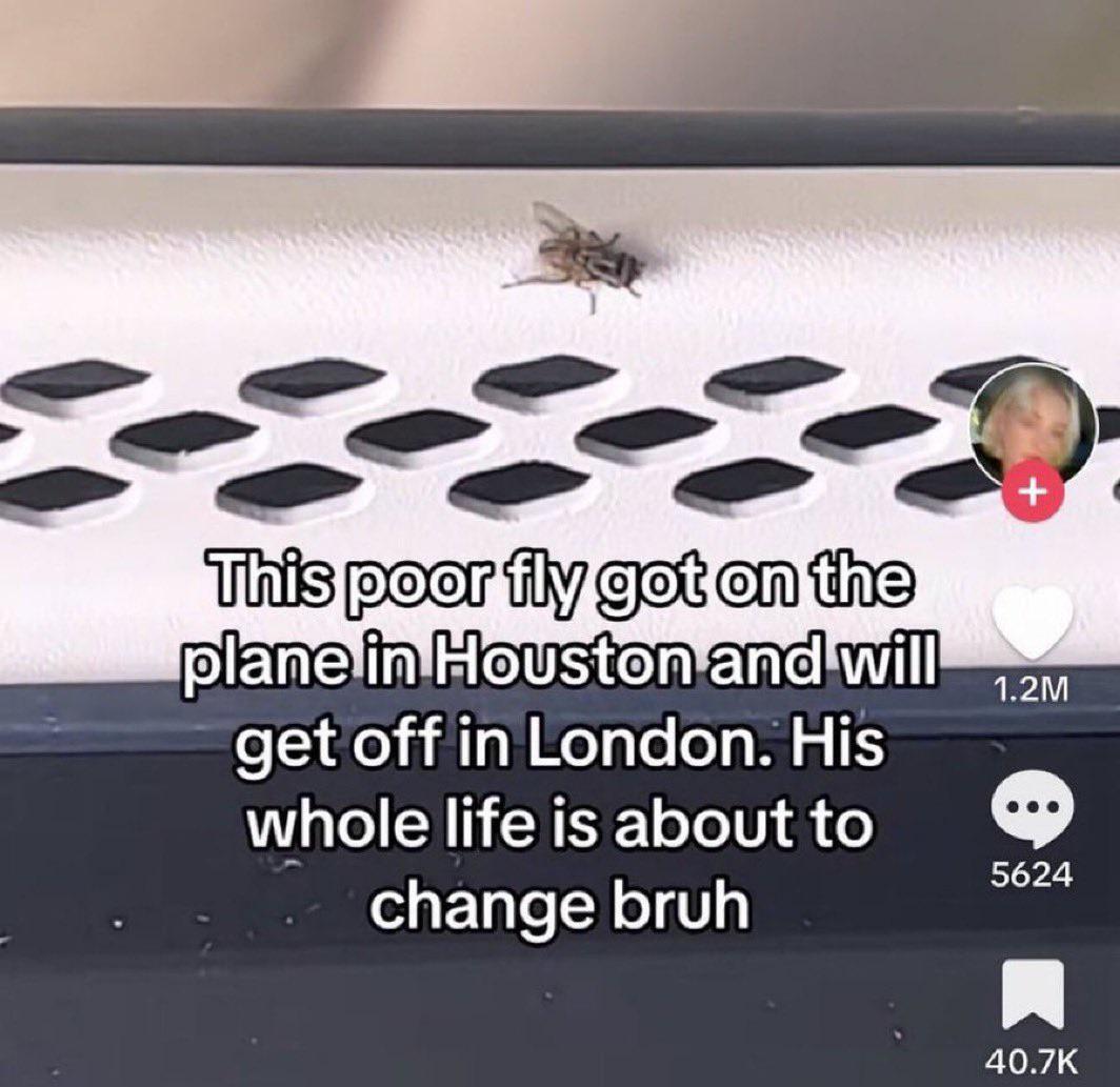Watch this fly get upgraded: a viral TikTok meme about a fly boarding in Houston and landing in London. Relatable travel meme that's epic, funny, and legendary.