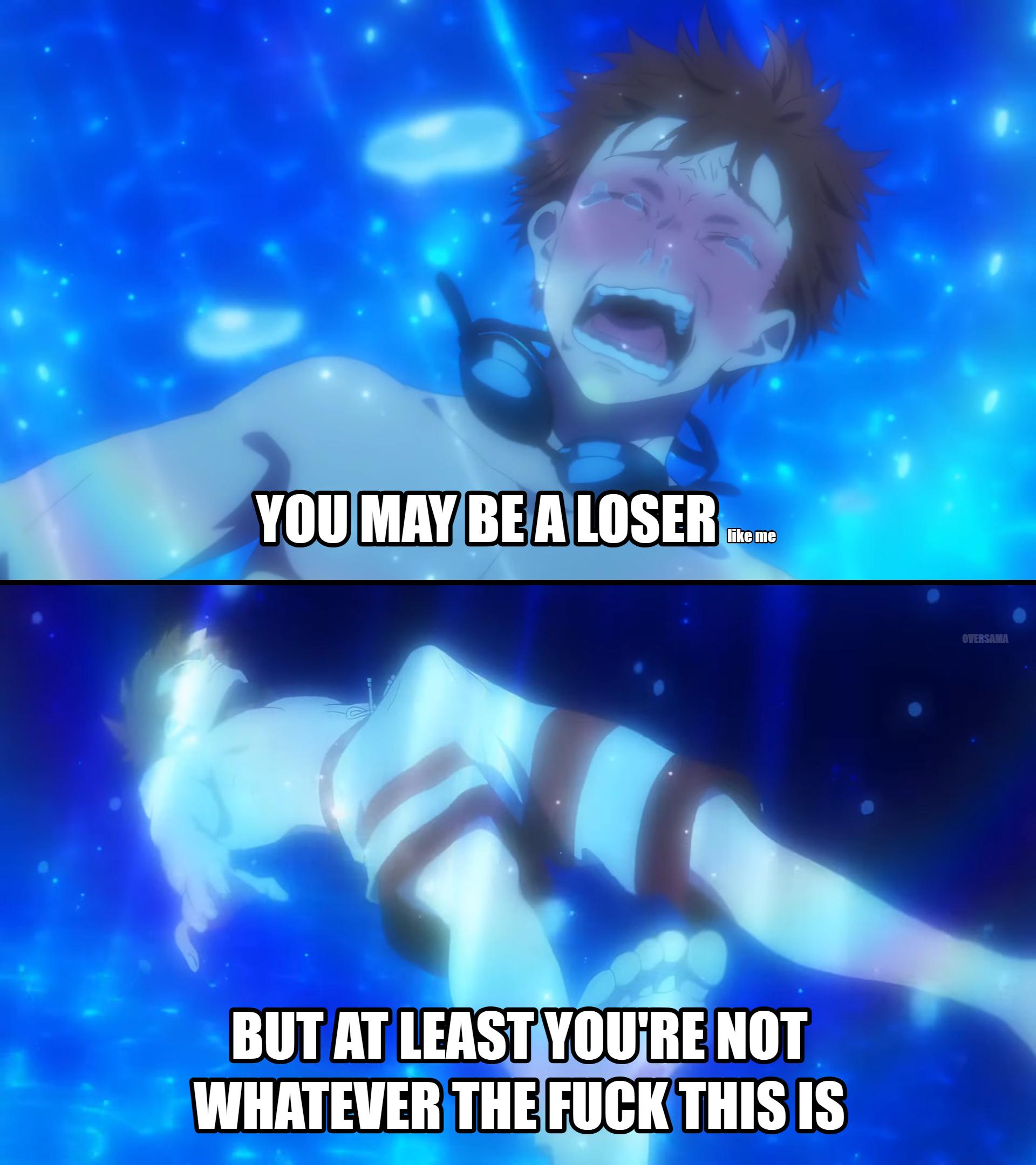 #funny #relatable #crying #anime #underwater #reaction #self deprecating #image macro #loser #sad #drowning #internet humor