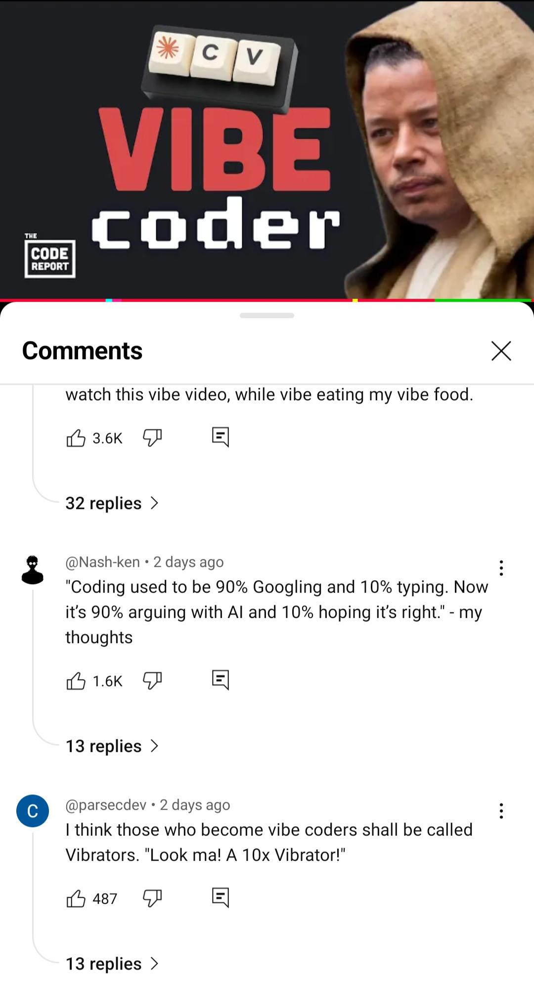 This ProgrammingMemes, TechMemes, FunnyMemes meme features Vibe Coder text with comments about coding and AI humor below. Created and shared on Jart.lol, this image meme represents the best of internet culture and humor.