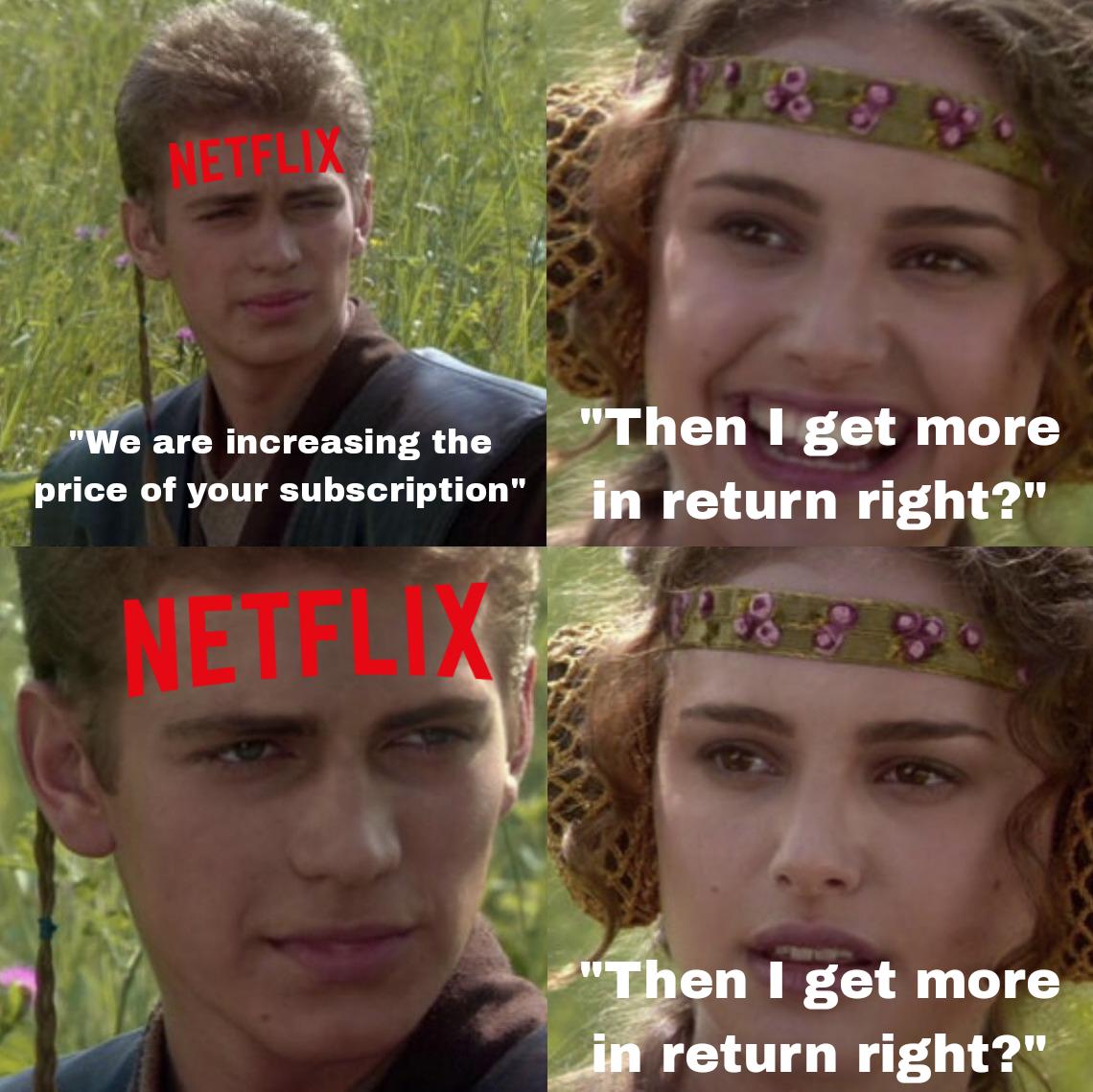 #funny #relatable #netflix #streaming #price hike #star wars #anakin and padme #corporate humor #reaction meme #internet culture #subscription #memes