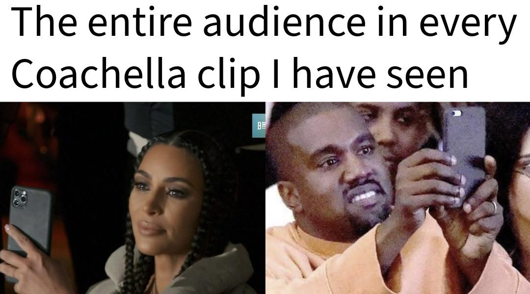 #funny #relatable #coachella #concert #phone #recording #celebrity #kim kardashian #kanye west #reaction meme #music festival #pop culture
