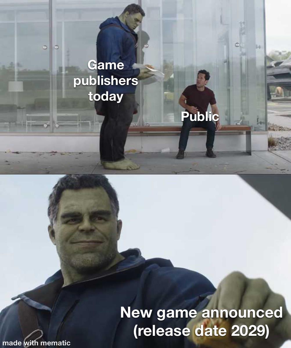 This Hulk giving a taco to Ant-Man meme highlights the frustration of gamers waiting years for a game release. A relatable look at modern gaming industry trends.