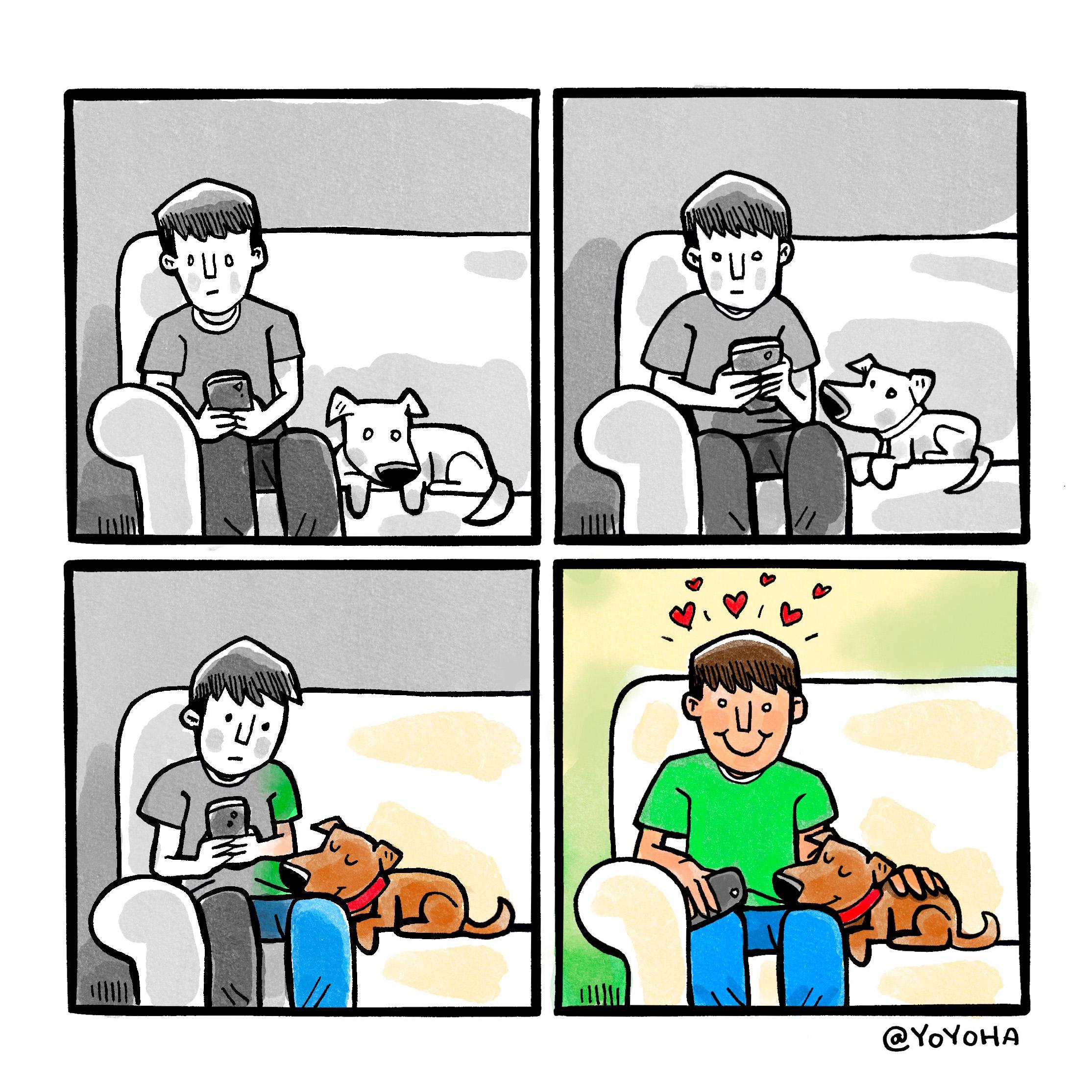 #wholesome #dog lover #cute #relatable #comic strip #digital art #pet love #happiness #yoyoha #heartwarming memes #mental health #phone addiction
