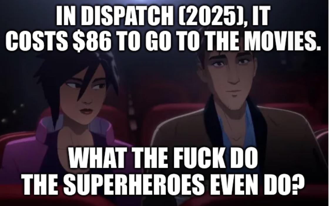 #funny #relatable #inflation #movie theater #superhero fatigue #Dispatch #animated #social commentary #pop culture #reaction image #cinema prices #satire
