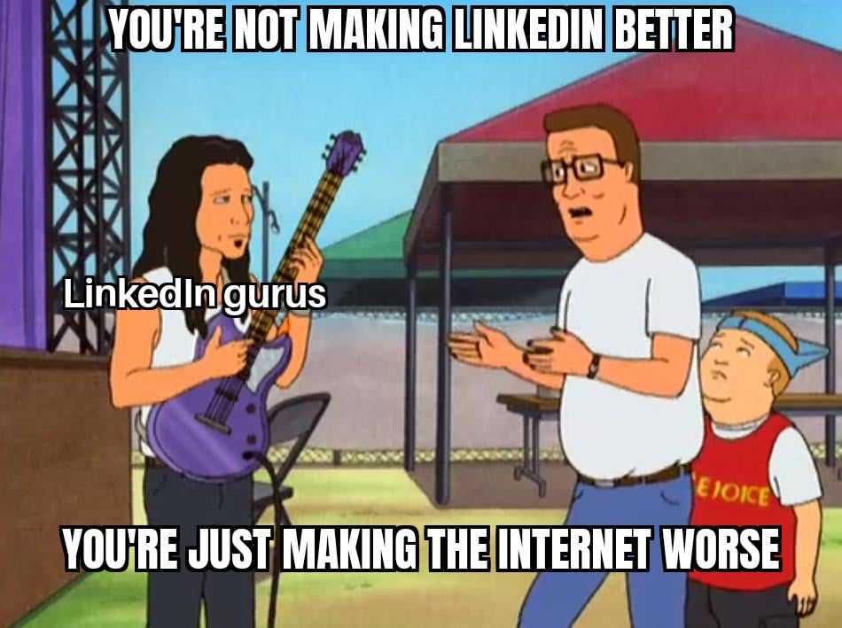 Viral LinkedIn gurus meme calling out cringe posts. This King of the Hill meme template roasts those making social media worse. Epic meme content!