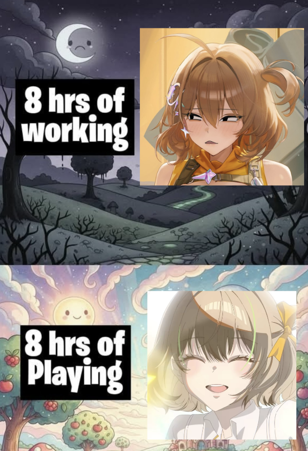 #relatable #work humor #gaming memes #exhaustion #happy vs sad #anime girls #life balance #comparison meme #internet culture #office life #gaming lifestyle