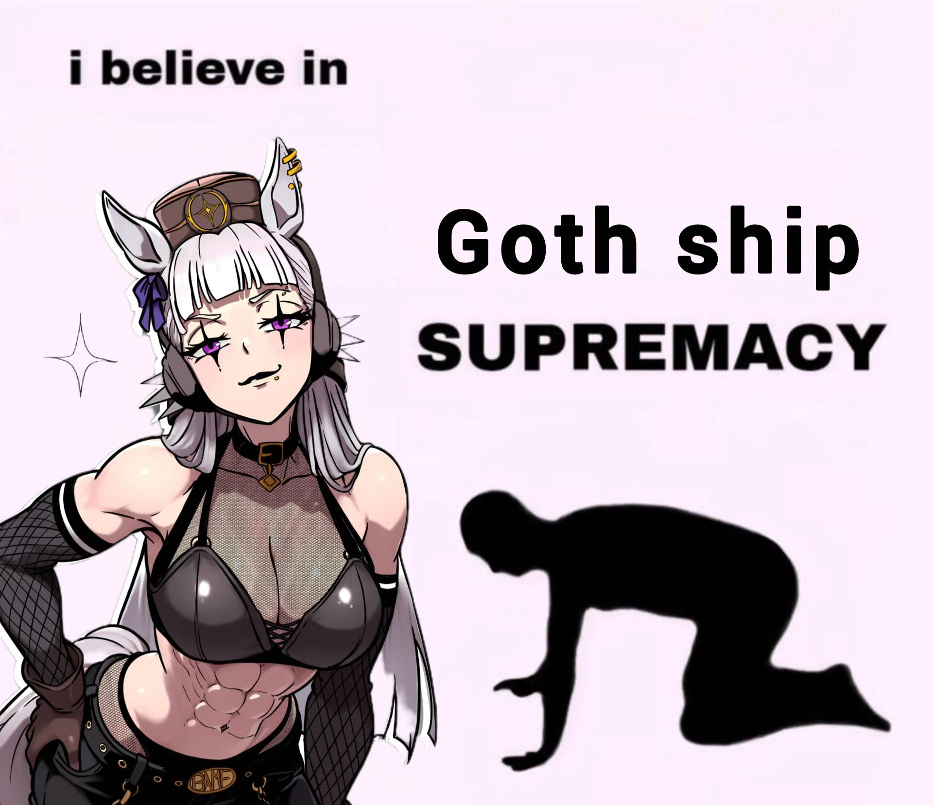 An I Believe In meme featuring an edgy anime character with a black outfit and abs. This relatable anime meme showcases fans declaring their aesthetic love.