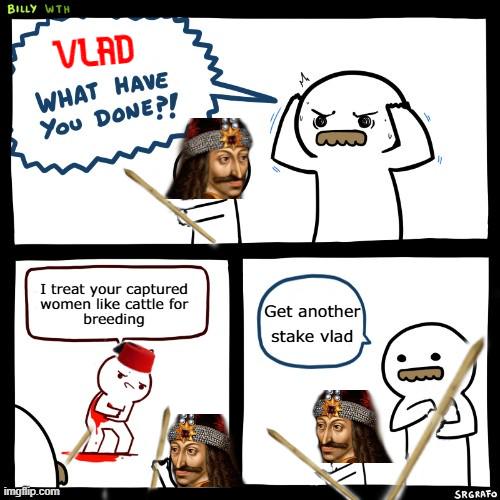 History lovers, check this Vlad What Have You Done meme. Hilarious dark history memes blend iconic templates with viral humor for epic laughs online.