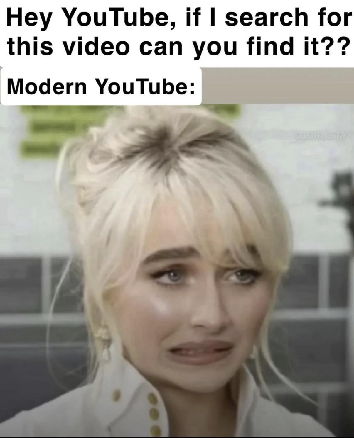 #funny #relatable #youtube #tech humor #search engine #sabrina carpenter #reaction meme #internet culture #frustration #social media #video platform #modern technology