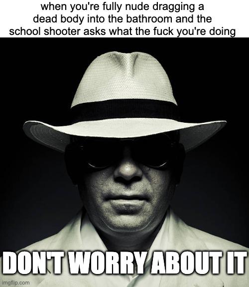 #funny #dark humor #awkward #relatable #fedora man #dont worry about it #reaction image #meme #absurdist #deadpan #internet memes #comedy