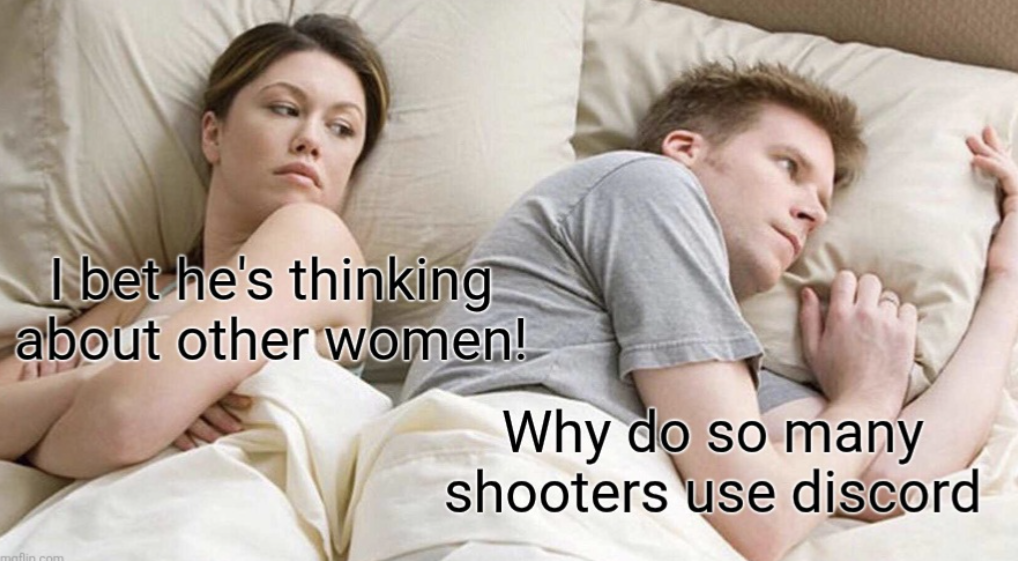 This FunnyMemes, GamingMemes, RelationshipMemes, ViralMemes meme features Woman and man lying in bed, woman looks upset. Text: 'I bet he's thinking about other women!' and 'Why do so many shooters use discord'.. Created and shared on Jart.lol, this image meme represents the best of internet culture and humor.