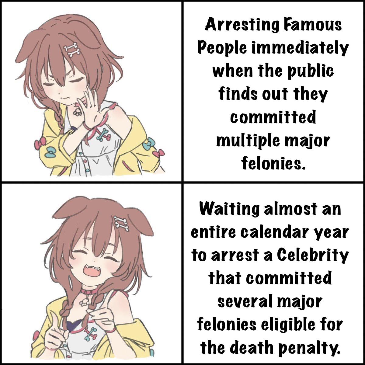 #funny #cynical #anime #vtuber #korone #justice system #celebrity #meme #social commentary #reaction image #two panel meme #satire